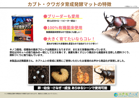 本製品はカブトムシの育成に実際にご使用いただいたお客様のお声から商品化が実現しました。